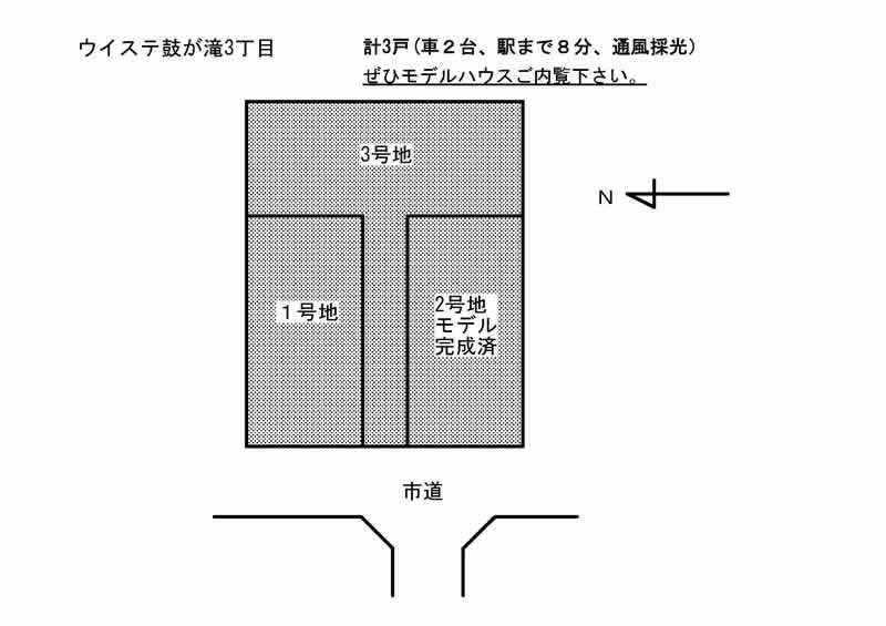 1号地:2,980万 (土地1,405万 建物1,575万) 2号地:2,880万 (土地1,305万 建物1,575万) 3号地:3,180万 (土地1,605万 建物1,575万)